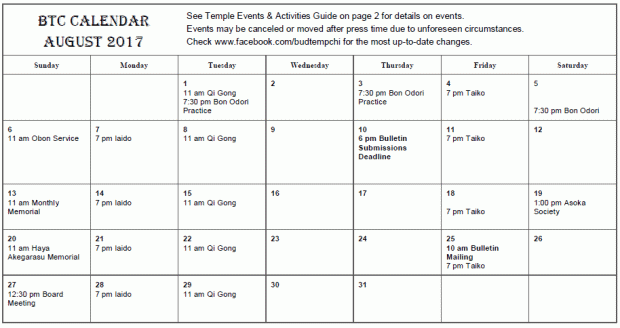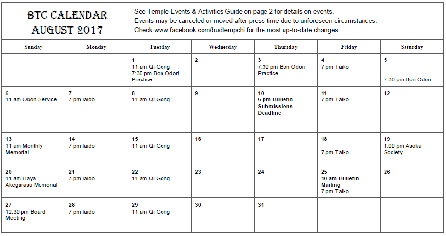 August 2017 Calendar July 30, 2017July 30, 2017 Click calendar image to see a larger version. Click here for full list to all calendars. —– IMPORTANT NOTE: This is a REVISED calendar THAT is more current than the version that was mailed out in the printed Bulletin. Share this: Click to email a link to a friend (Opens in new window) Email Click to share on Facebook (Opens in new window) Facebook Click to share on X (Opens in new window) X