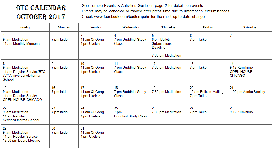 - BTC Bulletin – temple newsletter detailing many calendared events