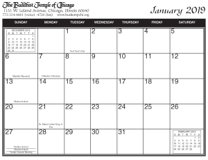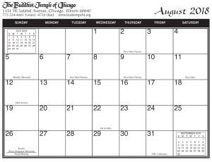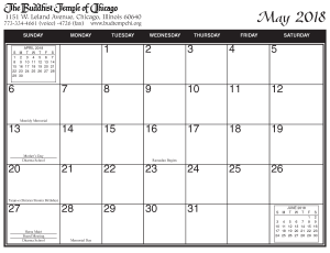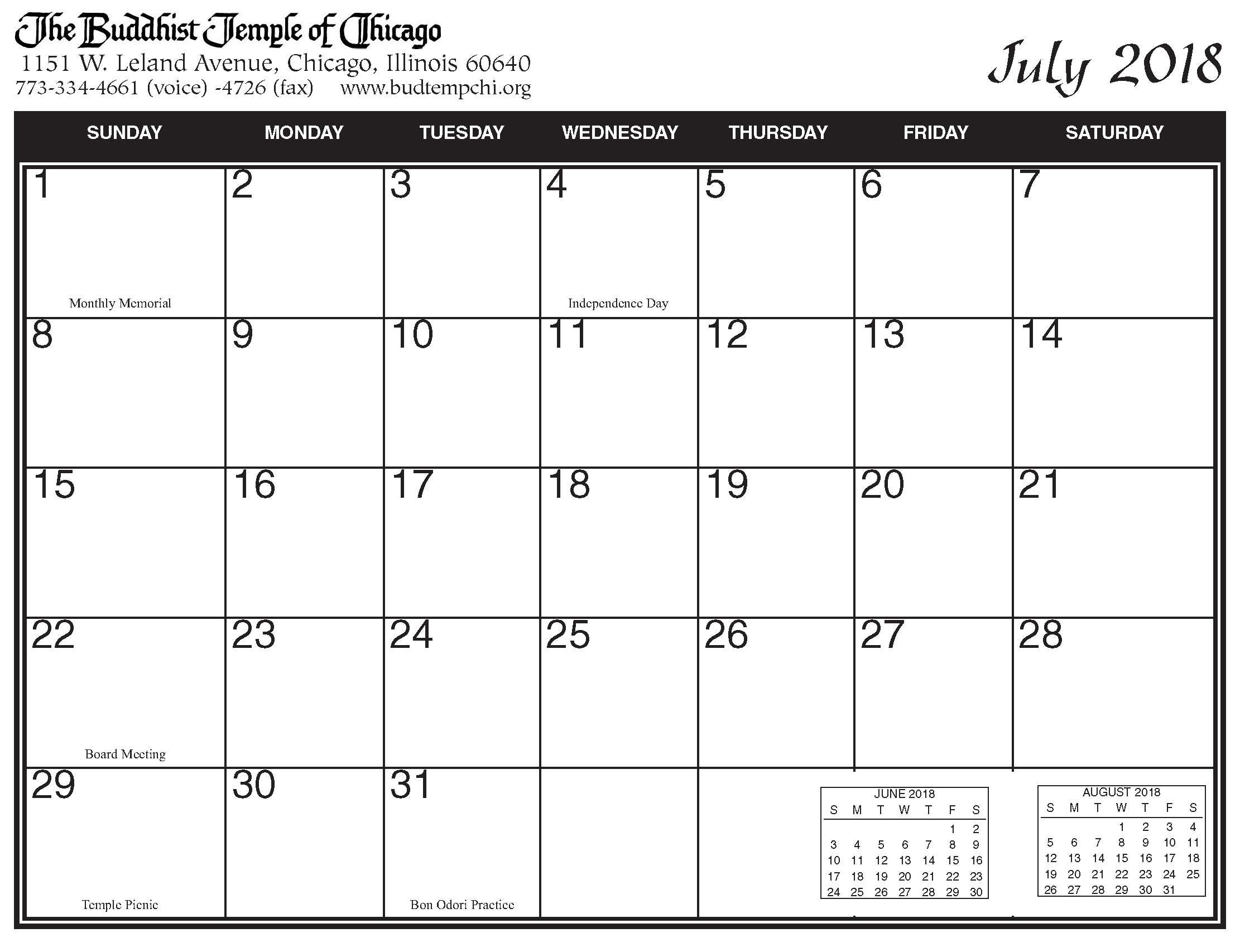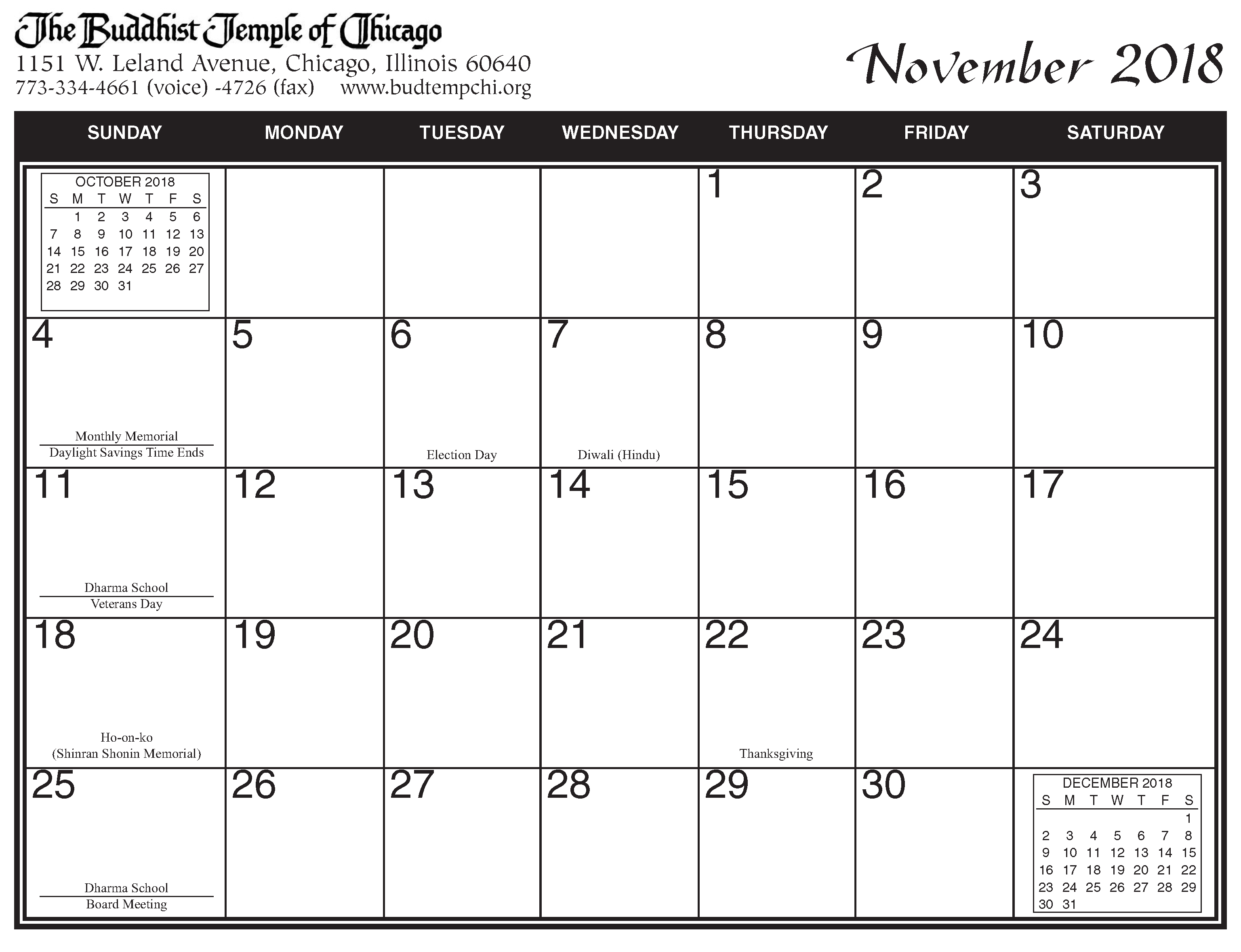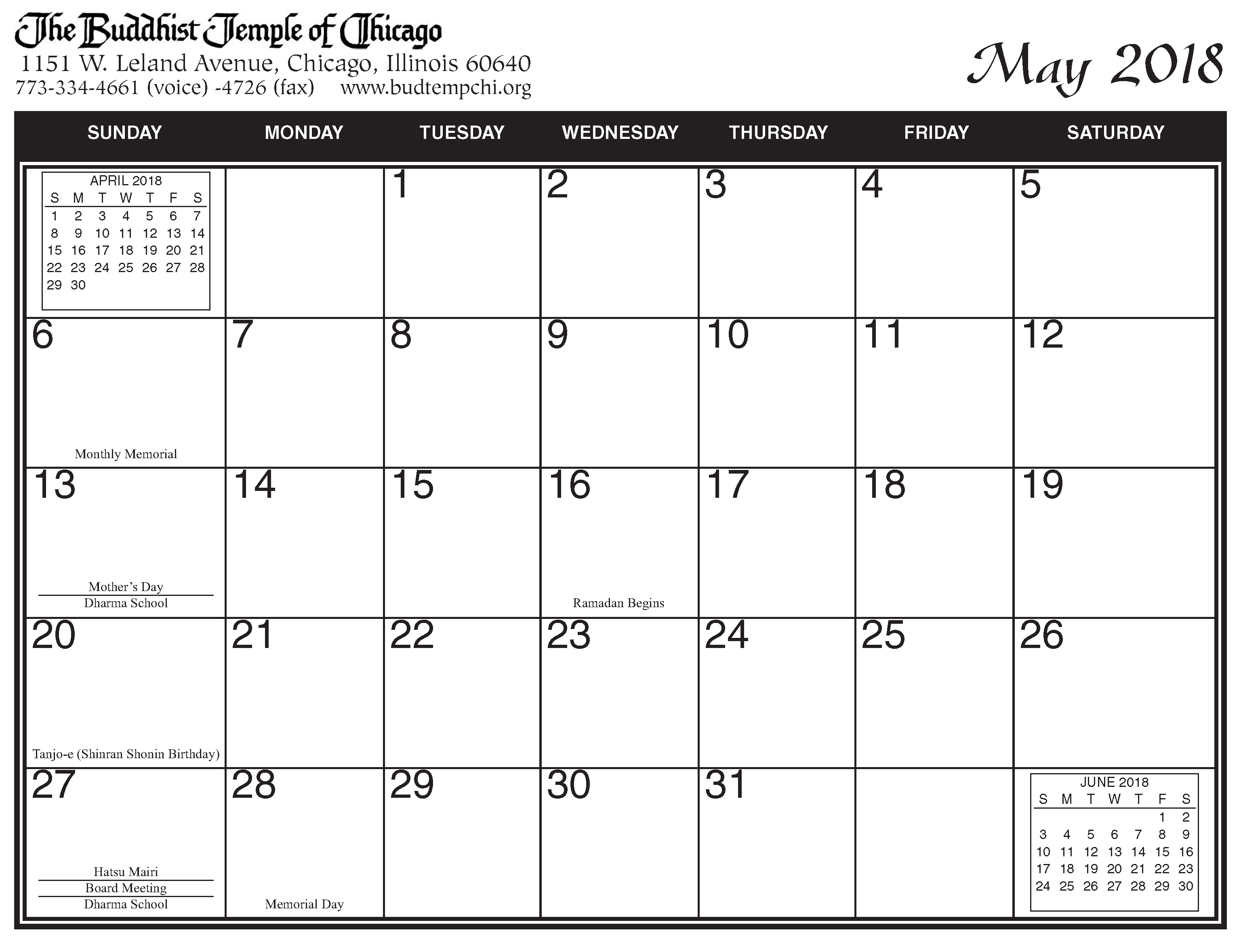 This printed calendar is provided online for those who need more than a month’s notice on certain special annual events and holidays. Because this calendar was published in December of 2017, please note that it does not include classes and is always at risk of being outdated, especially as we get later into the year. Check Facebook and the current calendar page (updated monthly for the BTC Bulletin) for the most recent dates.