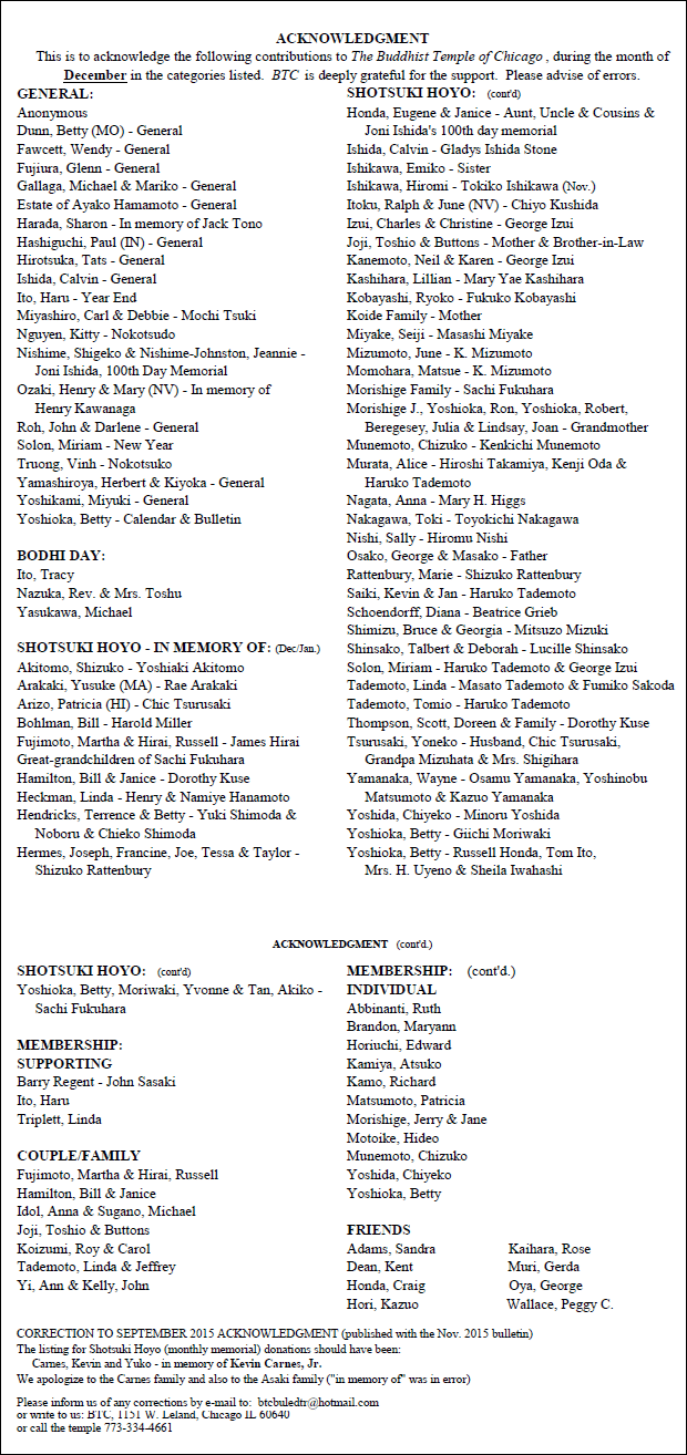 - BTC Bulletin, December 2015 | December Memorial | October Acknowledgments