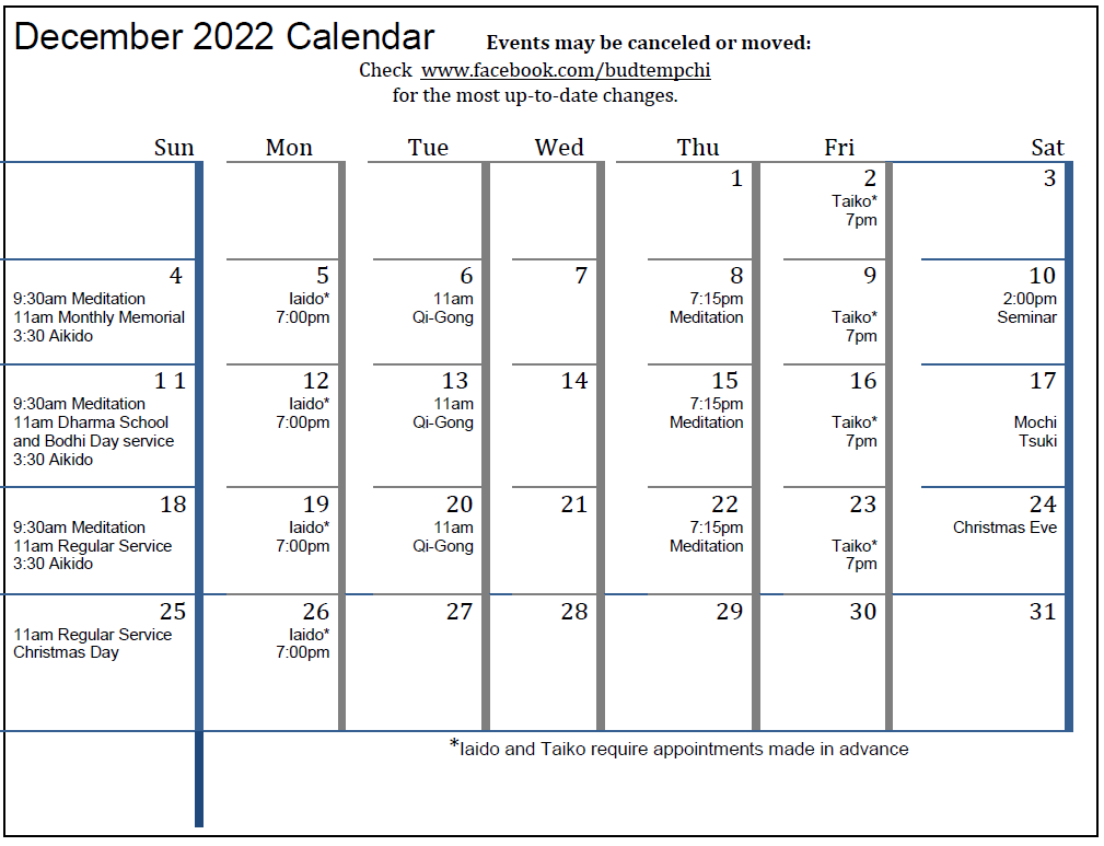 The temple’s monthly newsletter has a paper and digital circulation of about 1,000 readers. It has been published since the temple’s inception. Containing both event articles and dharma lessons by the Resident Minister, temple President, guest writers, and contributors, it is also the main source of news and events at the temple. Note that each month’s Acknowledgements is always two months behind because the Bulletin is printed one month in advance.